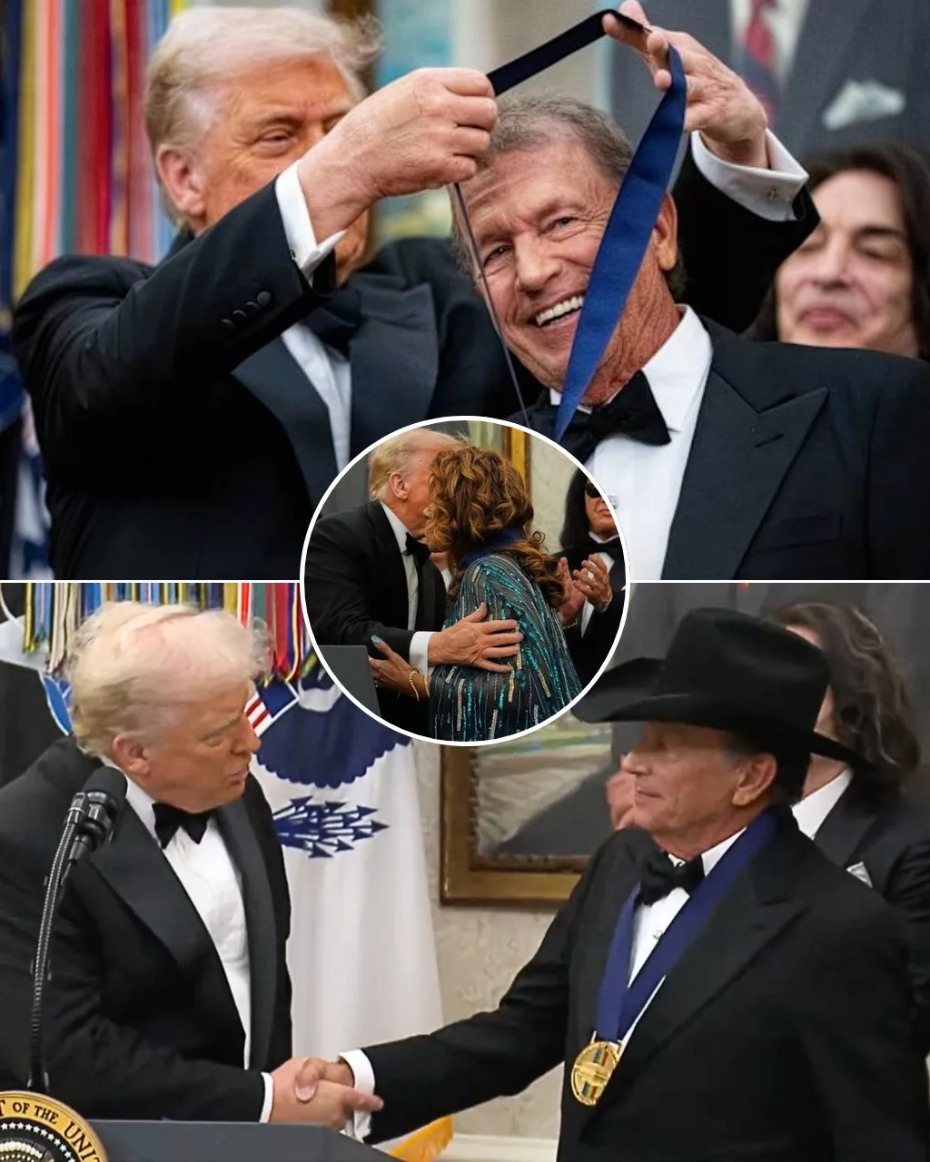 As President Donald Trump gently lifted the Kennedy Center Honors medallion and placed it around George Strait’s neck, witnesses say the room went completely still. No jokes. No side comments. No noise at all—just a shared sense that something bigger than ceremony was happening.