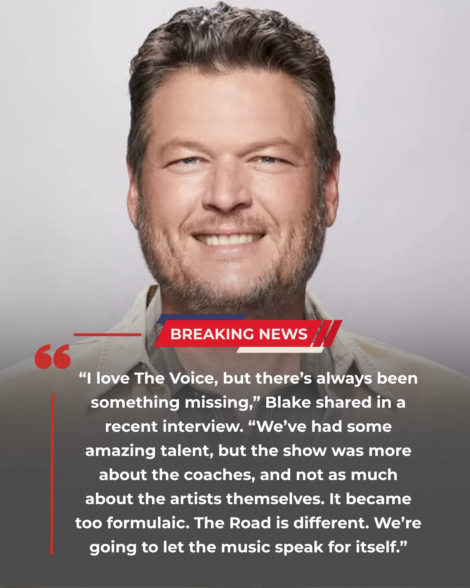 “I love The Voice, but there’s always been something missing,” Blake shared in a recent interview. “We’ve had some amazing talent, but the show was more about the coaches, and not as much about the artists themselves. It became too formulaic. The Road is different. We’re going to let the music speak for itself.”
