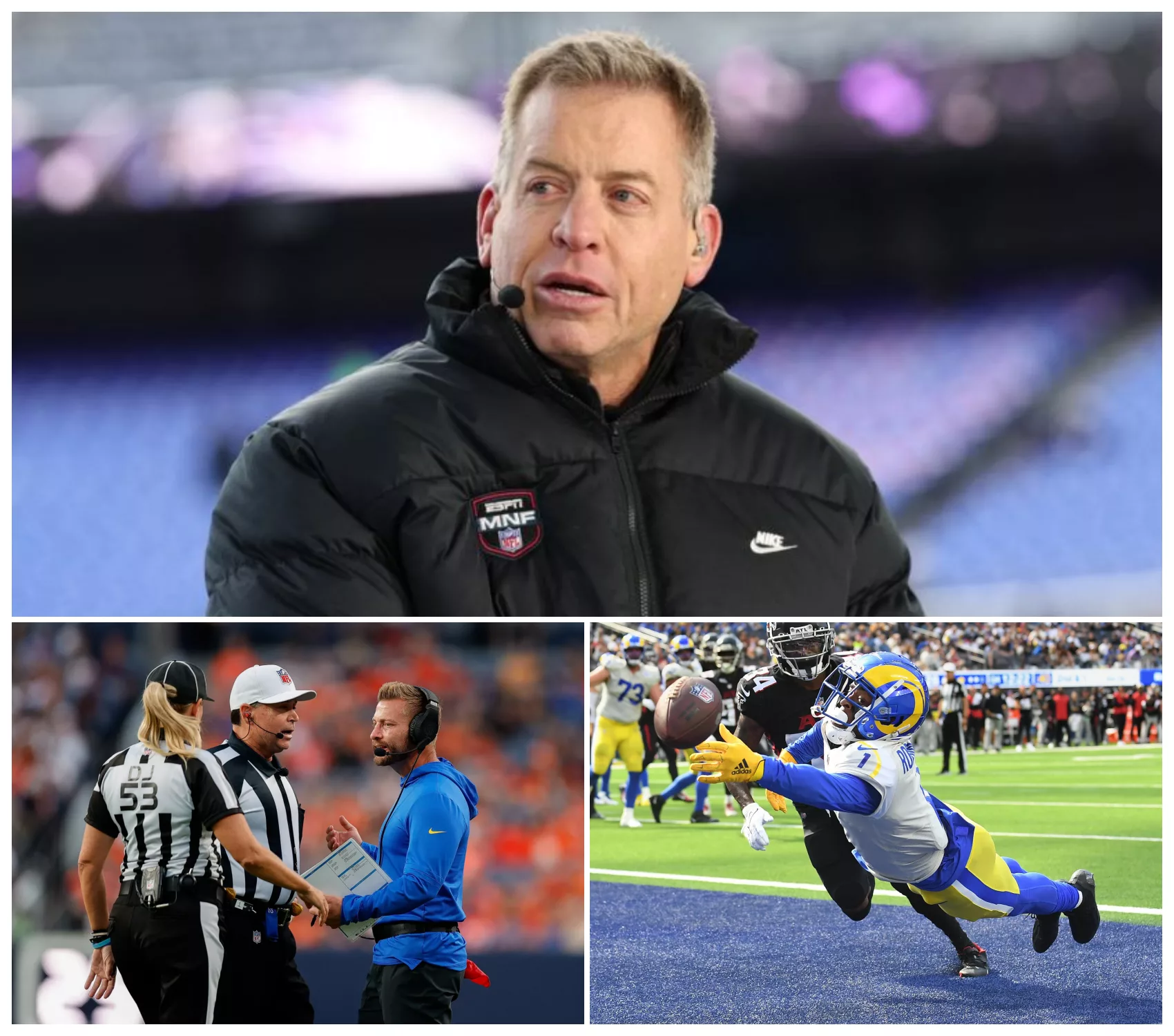 The reaction was immediate and explosive. Rams fans, already simmering with frustration after several questionable calls during key moments of the game, seized on Aikman’s words as validation. Social media platforms lit up with slowed-down replays, screenshots, and detailed breakdowns of officiating decisions that many believe directly influenced the final score. Hashtags calling for accountability began trending within minutes, while clips of Aikman’s comments were shared millions of times.