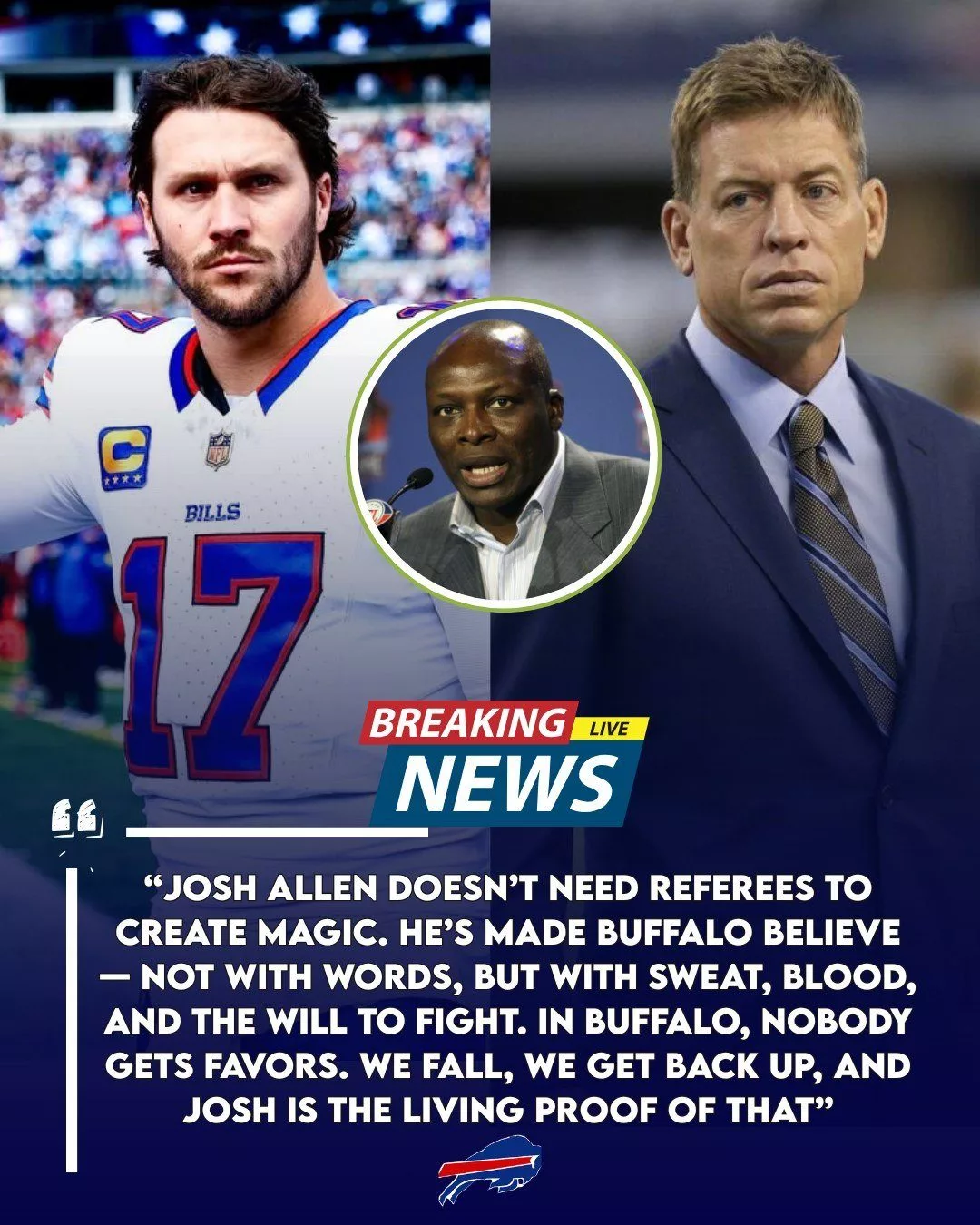 During the postgame analysis on ESPN, legendary quarterback Troy Aikman made a surprising claim that immediately sent shockwaves through the sports community. “Let’s be honest,” Aikman said bluntly. “Josh Allen gets calls other quarterbacks don’t. The refs protect him differently.”