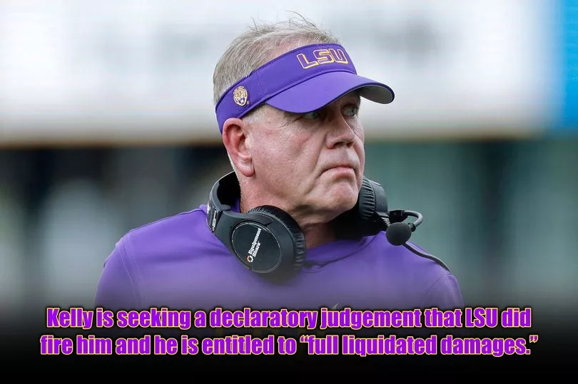 The filings state that Kelly is seeking a declaratory judgment affirming that he was fired by LSU and therefore is entitled to “full liquidated damages” as stipulated in his contract.