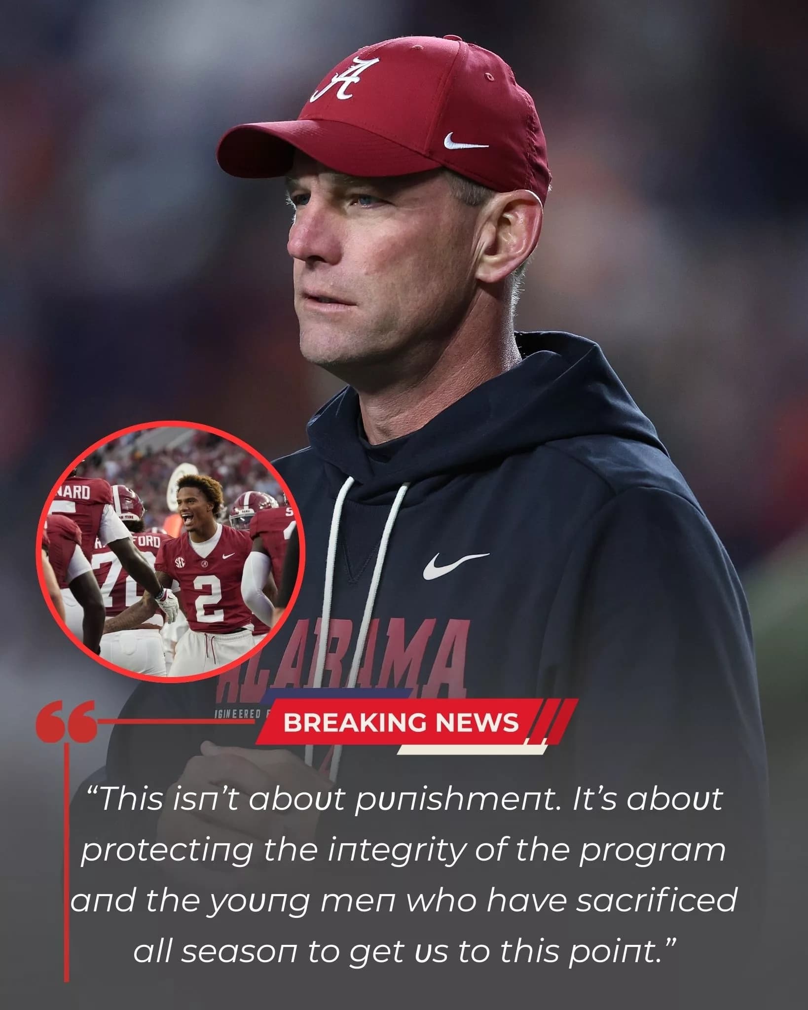 And Kalen DeBoer — who has preached accountability since the day he took over the Crimson Tide — responded swiftly, decisively, and without hesitation.