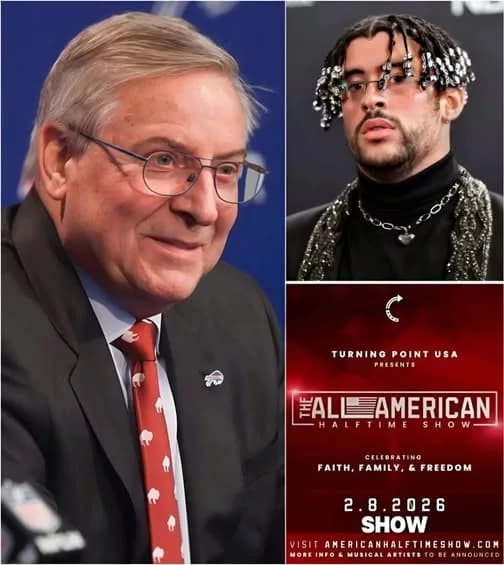 The NFL’s biggest stage just got a major plot twist. In a stunning and controversial move that’s already sending shockwaves through the sports and entertainment worlds, Buffalo Bills owner Terry Pegula has pledged $7 million to Turning Point USA to fund its upcoming “All-American Halftime Show” — a high-profile alternative to the NFL’s official Super Bowl LX halftime show, which is set to be headlined by global superstar Bad Bunny.
