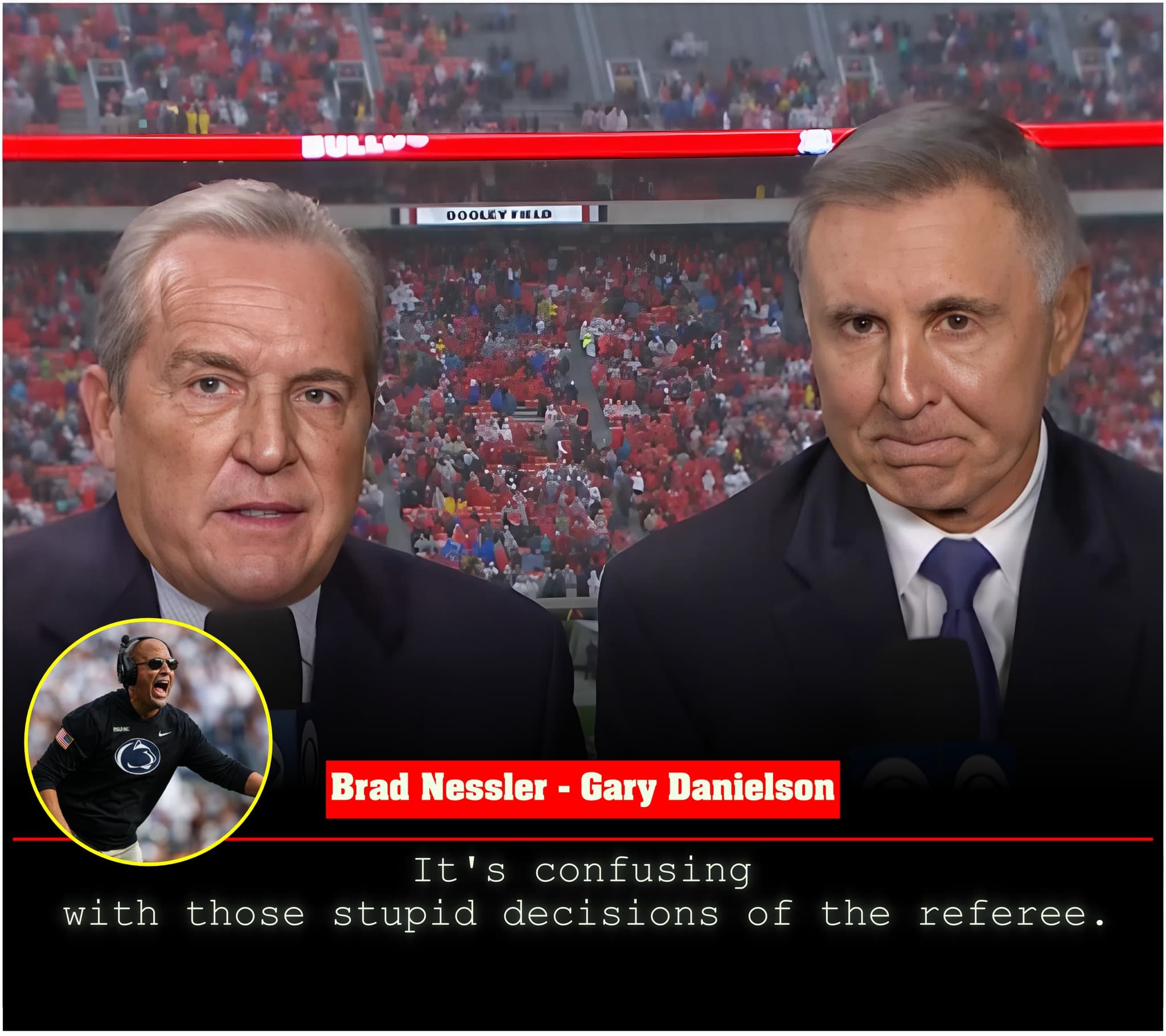 During CBS Sports’ live broadcast, veteran commentators Brad Nessler and Gary Danielson openly raised concerns about the officiating throughout the game — pointing out what they called a “series of highly questionable decisions” that appeared to disadvantage Penn State.