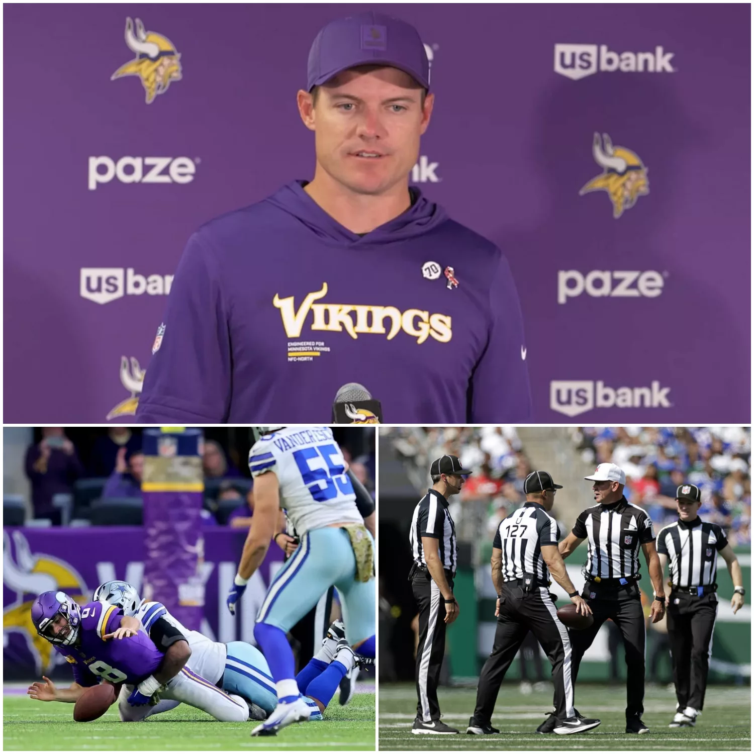 In conclusion, the 34–26 victory over Dallas was more than just a win for Minnesota — it became a focal point in discussions about officiating, fairness, and accountability in the NFL. The game demonstrated the Vikings’ skill, discipline, and composure, while simultaneously sparking a broader conversation about transparency in officiating. As the league investigates the officials and examines each call, fans, analysts, and players alike will be watching closely, aware that the outcome of a single game can have far-reaching implications for perceptions of fairness and integrity in professional football.
