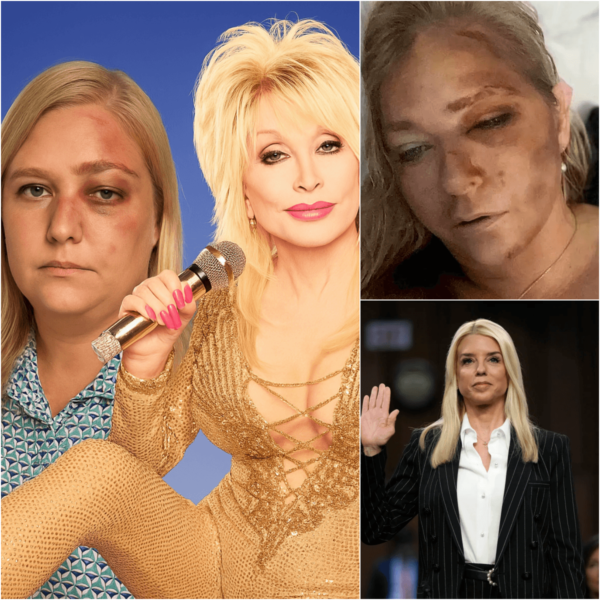 In this dramatized narrative, Pam Bondi appeared in a controlled, carefully lit interview — not shouting, not rattled, but calm in a way that felt almost more dangerous than anger. The interviewer asked about Dolly’s comments. Bondi didn’t flinch.