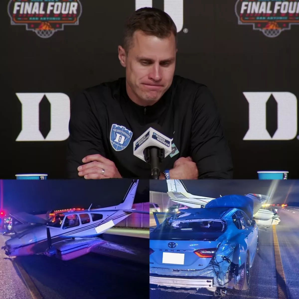 In a story that has stunned the college basketball world and shaken Duke Nation to its core, Duke head coach Jon Scheyer has confirmed the identity of the pilot involved in Sunday’s terrifying emergency landing on I-95 — a crash that ended with a Beechcraft 55 skidding across the interstate and striking a Toyota Camry.