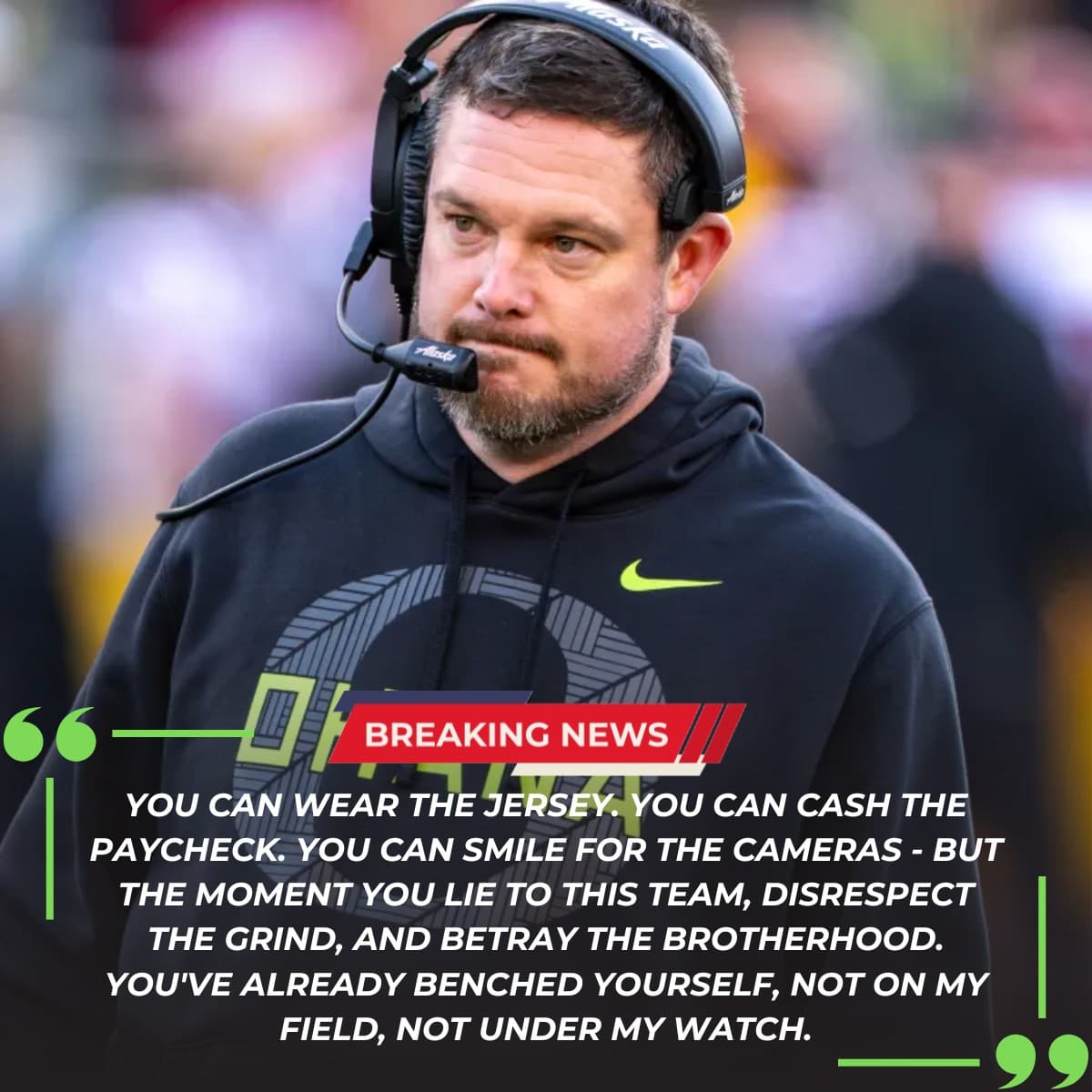 “If you think skipping practice and lying about it makes you an Oregon Duck, think again — not on my field, not under my watch.”
