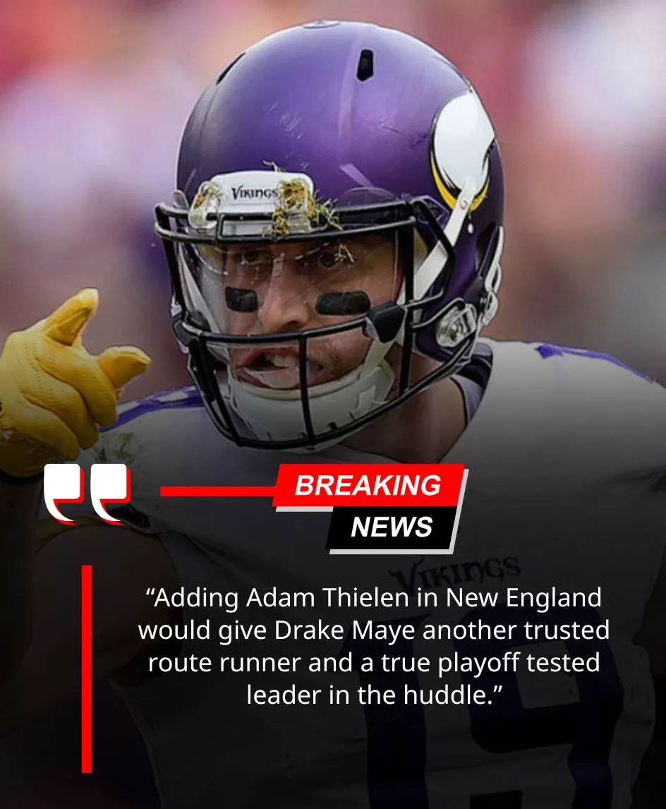 The New England Patriots, sitting atop the AFC and riding a wave of momentum, are reportedly targeting veteran wide receiver Adam Thielen as a key addition to their roster. Sources close to the team indicate that the Patriots are seeking not just a top-tier receiving option, but also a playoff-tested mentor to guide young quarterback Drake Maye as he continues his breakout MVP-caliber season.