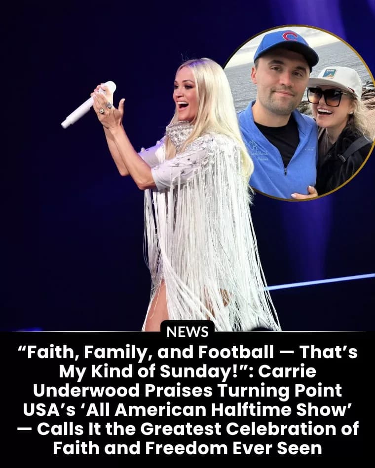 It was a moment of pure, unfiltered emotion — and Carrie Underwood’s reaction captured it perfectly. When the country superstar heard about Turning Point USA’s “All American Halftime Show,” she couldn’t hold back her excitement. Her face lit up, her voice filled with passion, and her words echoed across social media within minutes: “This is the greatest show ever — a celebration of who we are.”