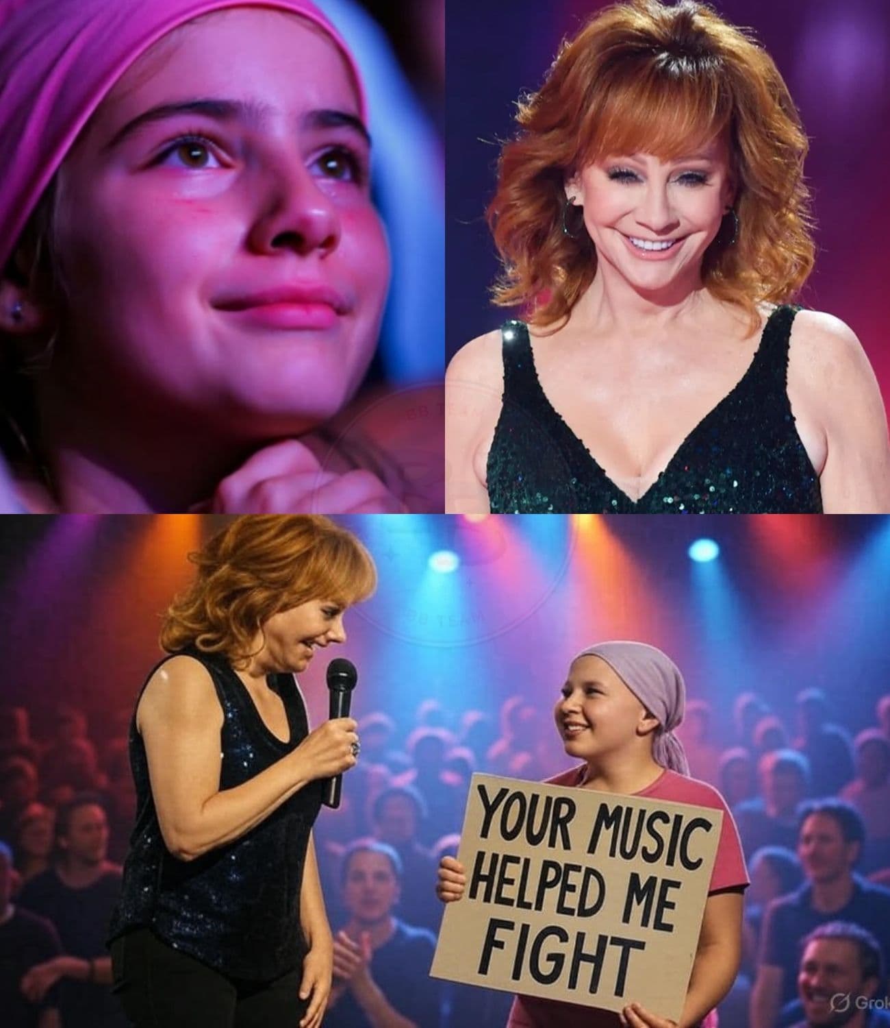 It all started in the middle of her show when Reba, who was in the midst of singing one of her iconic songs, noticed a young woman in the front row. The young fan was wearing a headscarf, a symbol of strength and resilience, and holding a sign that read, “Your music helped me fight.” The message on the sign immediately struck Reba’s heart. It was a simple yet profound reminder of the incredible impact music can have on the lives of those who listen to it. In that instant, Reba paused—stopping mid-performance to focus on the young woman in the audience.