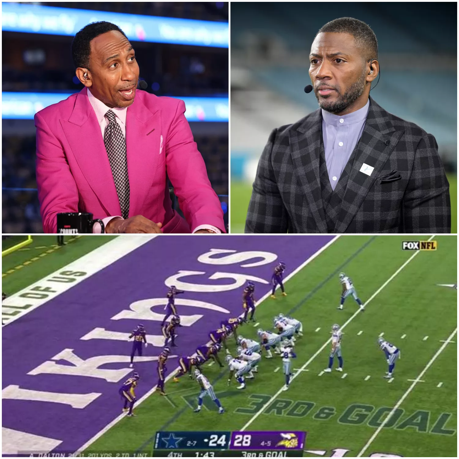 The studio monitors flashed replays of the game’s key moments, and Stephen A. immediately pointed at the screen, emphasizing the Vikings’ domination.