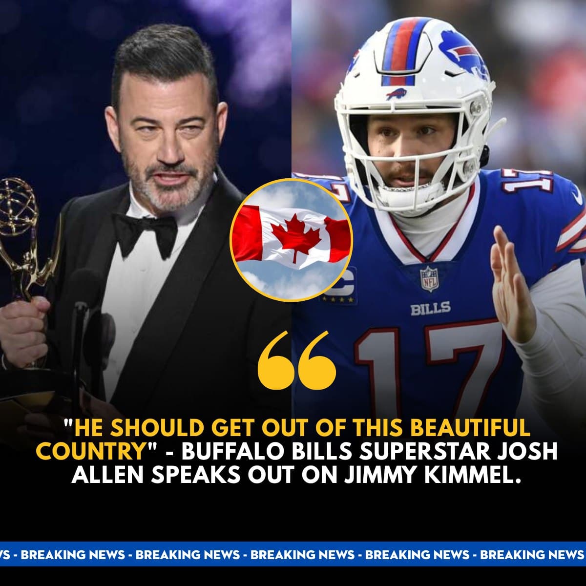 “HE SHOULD GET OUT OF THIS BEAUTIFUL COUNTRY” — Buffalo Bills superstar Josh Allen speaks out on Jimmy Kimmel announcing the end of Jimmy Kimmel Live and saying goodbye to America: “I’m moving to Canada and NEVER coming back!”