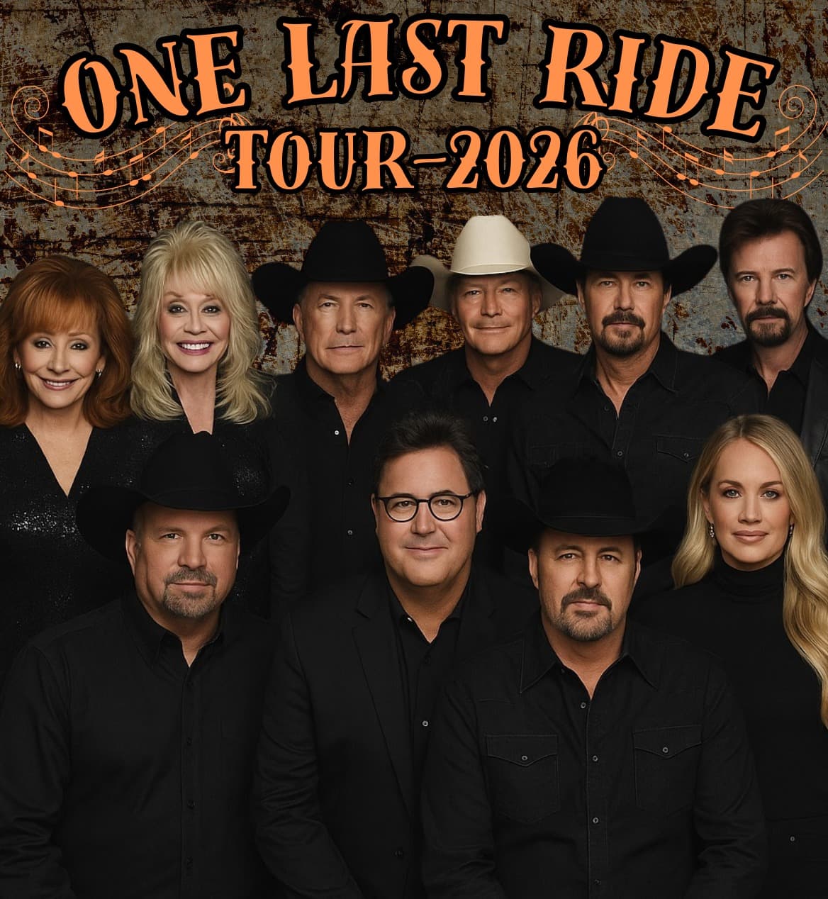 HISTORIC REVEAL: One Last Ride Tour 2026 — Country Music’s Greatest Legends Unite as Reba, Dolly, Willie, George, Alan, Garth, Vince, Brooks & Dunn, Carrie, and Trisha Share One Stage for the Final Farewell Fans Never Thought They’d Witness
