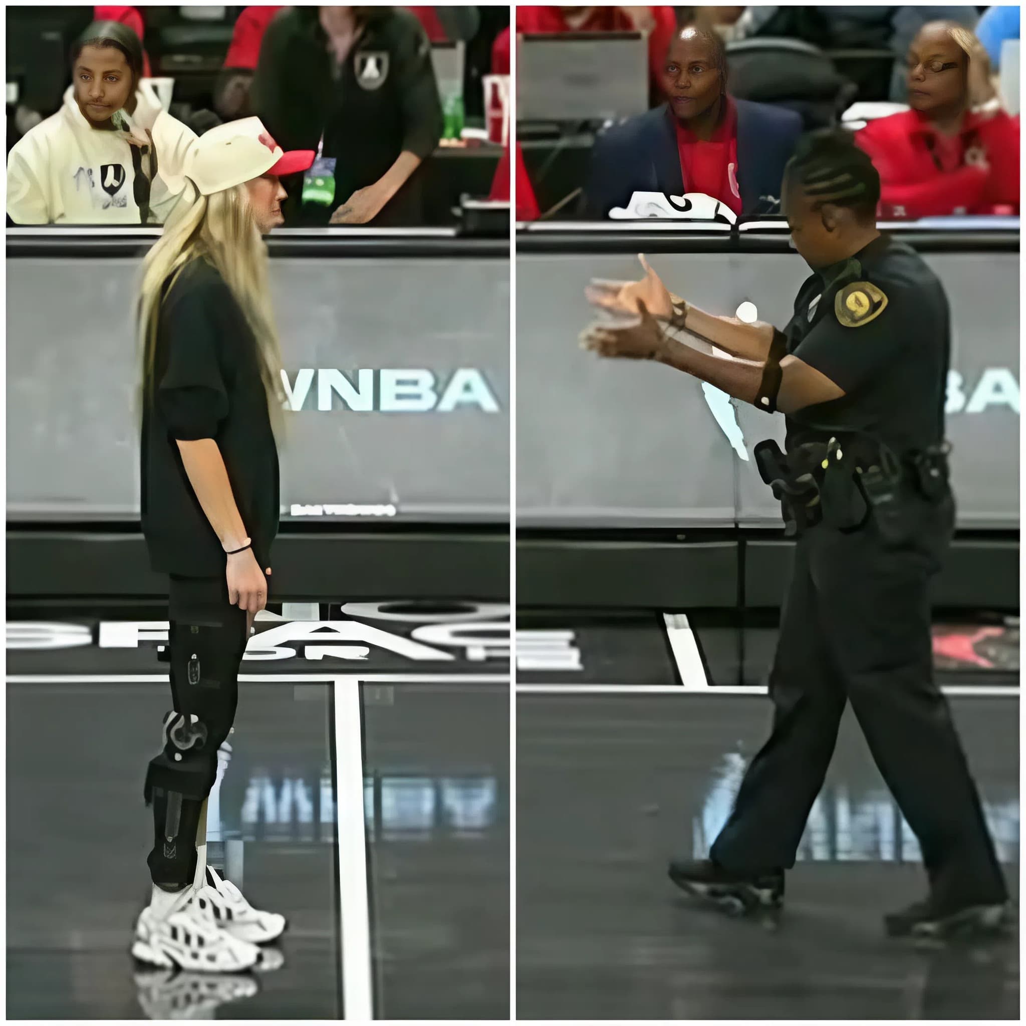 The scene was set for a dramatic finish. With just over four minutes remaining in the fourth quarter of a tight playoff contest, the Indiana Fever were trailing the Atlanta Dream. The game came to a sudden halt when Dream player Odyssey Sims went down with an injury, prompting an official timeout. In these moments, teams huddle, coaches strategize, and the arena holds its breath. But on this night, two of the Fever’s biggest personalities, Sophie Cunningham and rookie phenom Caitlin Clark, decided to move from the sideline. Both sidelined by injuries for the remainder of the season, they walked together toward center court, their intensity palpable even in street clothes. It was then that the situation took an unexpected turn. An Atlanta policewoman, part of the event’s security detail, met them near the half-court line. She gestured firmly, appearing to instruct the players to move back toward their bench. While Clark seemed to hesitate, Cunningham stood her ground, leading to a direct and visibly tense exchange of words with the officer before she eventually relented.