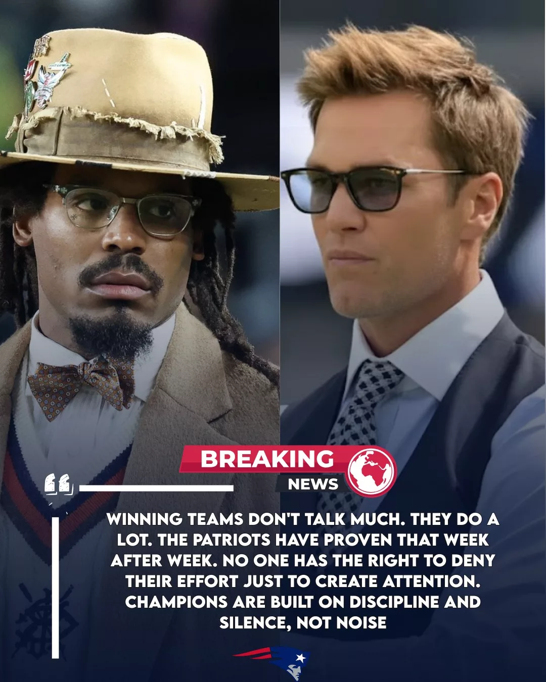And when Brady finally spoke, he didn’t raise his voice, didn’t take cheap shots, and didn’t defend New England with anger. Instead, he delivered a measured, powerful message that not only answered Newton’s critique but also reminded fans of the championship culture he helped create.