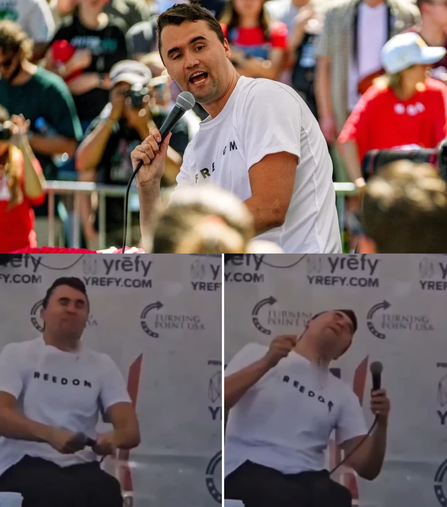 A few videos have been slowed down to show that the single bullet that was shot may have bounced off Charlie Kirk’s bulletproof vest and into the side of his neck, likely killing him instantly.