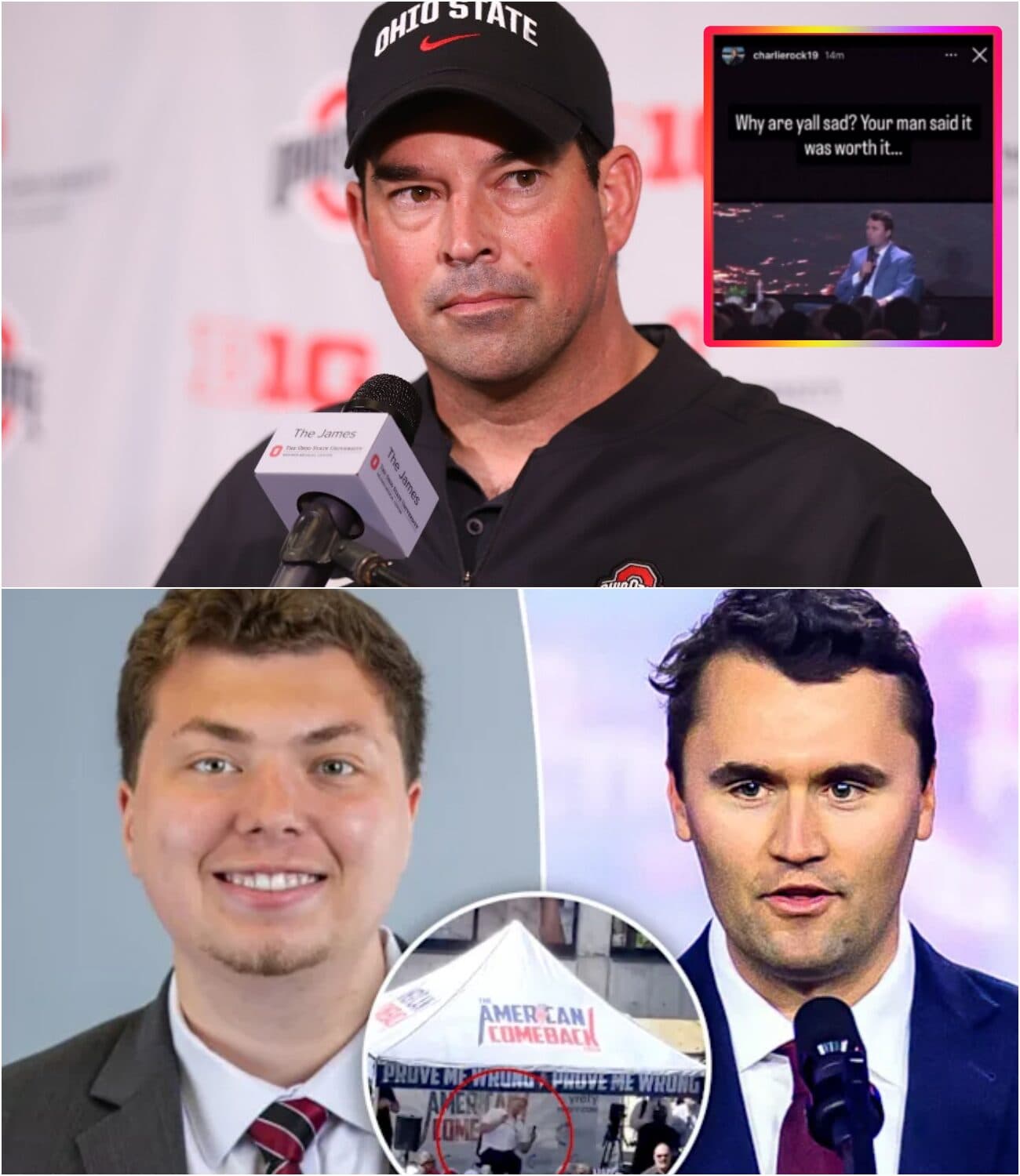 Ryan Day did not remain silent. With just FIVE WORDS, the Ohio State head coach delivered a sharp rebuke aimed squarely at Carolina Panthers communications coordinator Charlie Rock, who had published a string of callous social media posts mocking the death of Charlie Kirk. It was a moment that reminded the world that sometimes brevity is more powerful than any long speech. For Ryan Day, it was never just about clapping back at tasteless remarks. It was about defending the dignity of a man he considered more than a friend—it was about honoring someone who had devoted his life to faith, service, and his country until the very end.