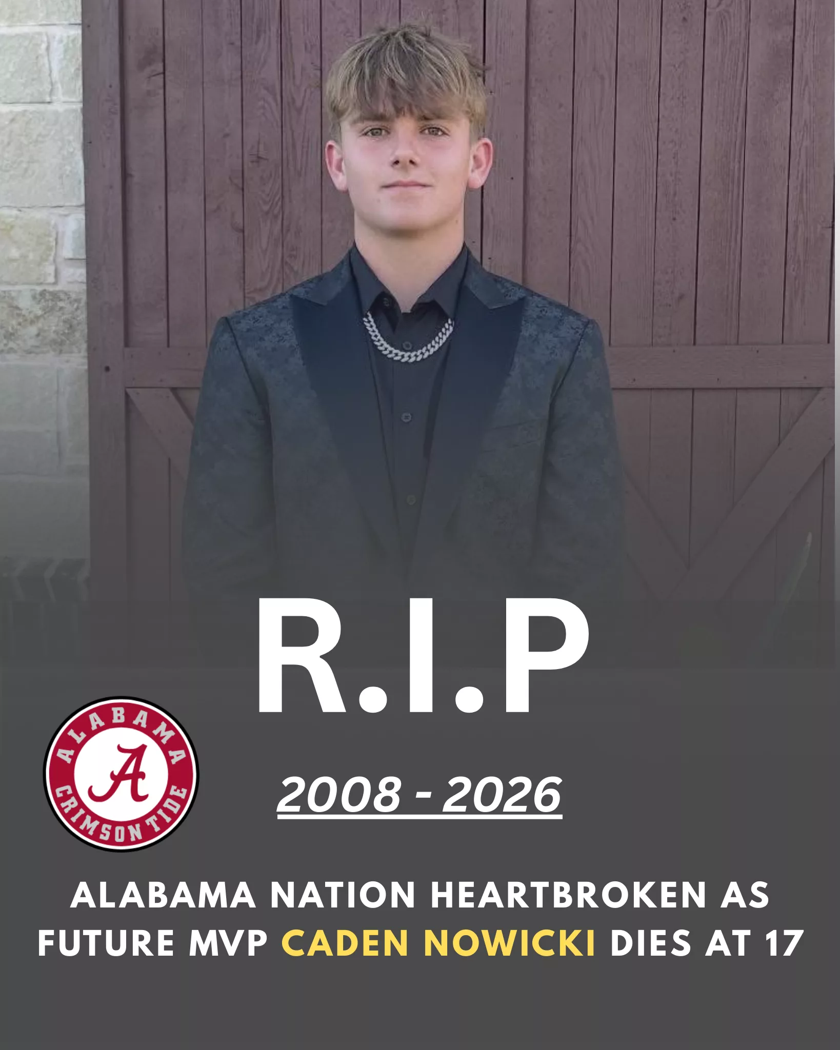 The Alabama Crimson Tide community is mourning an unspeakable tragedy following the sudden passing of Caden Nowicki, a 17-year-old football prodigy widely viewed as a future MVP and one of the most promising young talents ever linked to the program. The devastating news has sent shockwaves through Tuscaloosa and across the college football world, leaving fans, coaches, teammates, and rivals united in grief over a life filled with extraordinary promise that ended far too soon.