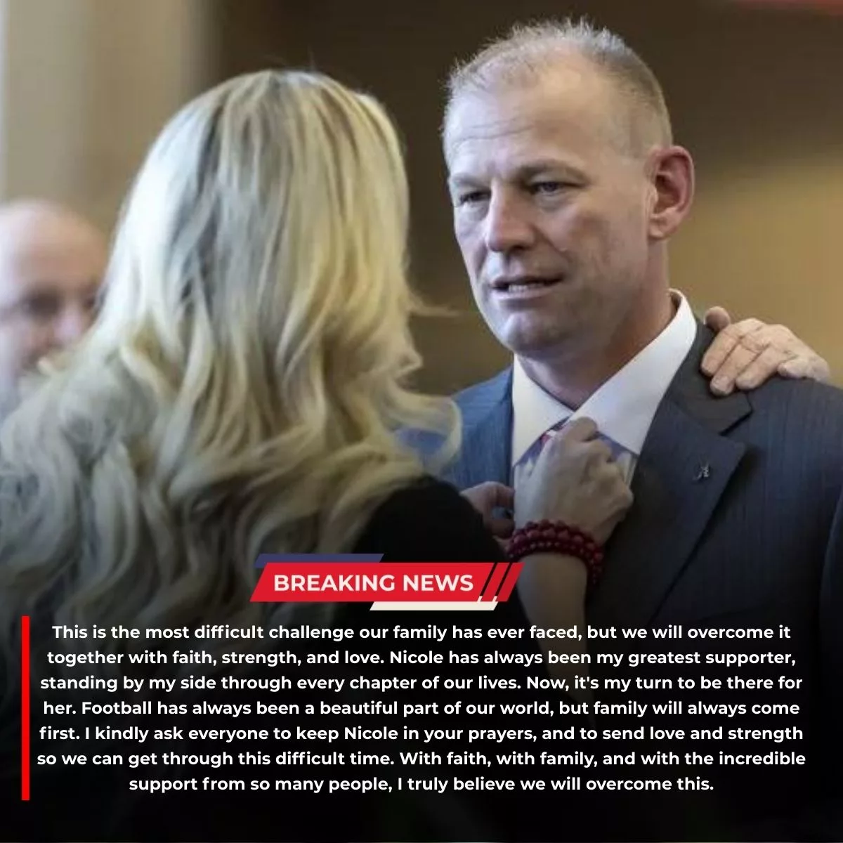 Behind closed doors, sources say DeBoer has spent countless late nights analyzing film, meeting with staff, and searching for solutions — often at the expense of rest, peace, or time with family. Nicole, always known as a grounding force in his life, has reportedly shouldered much of the emotional strain that comes with leading one of the most demanding programs in college sports.