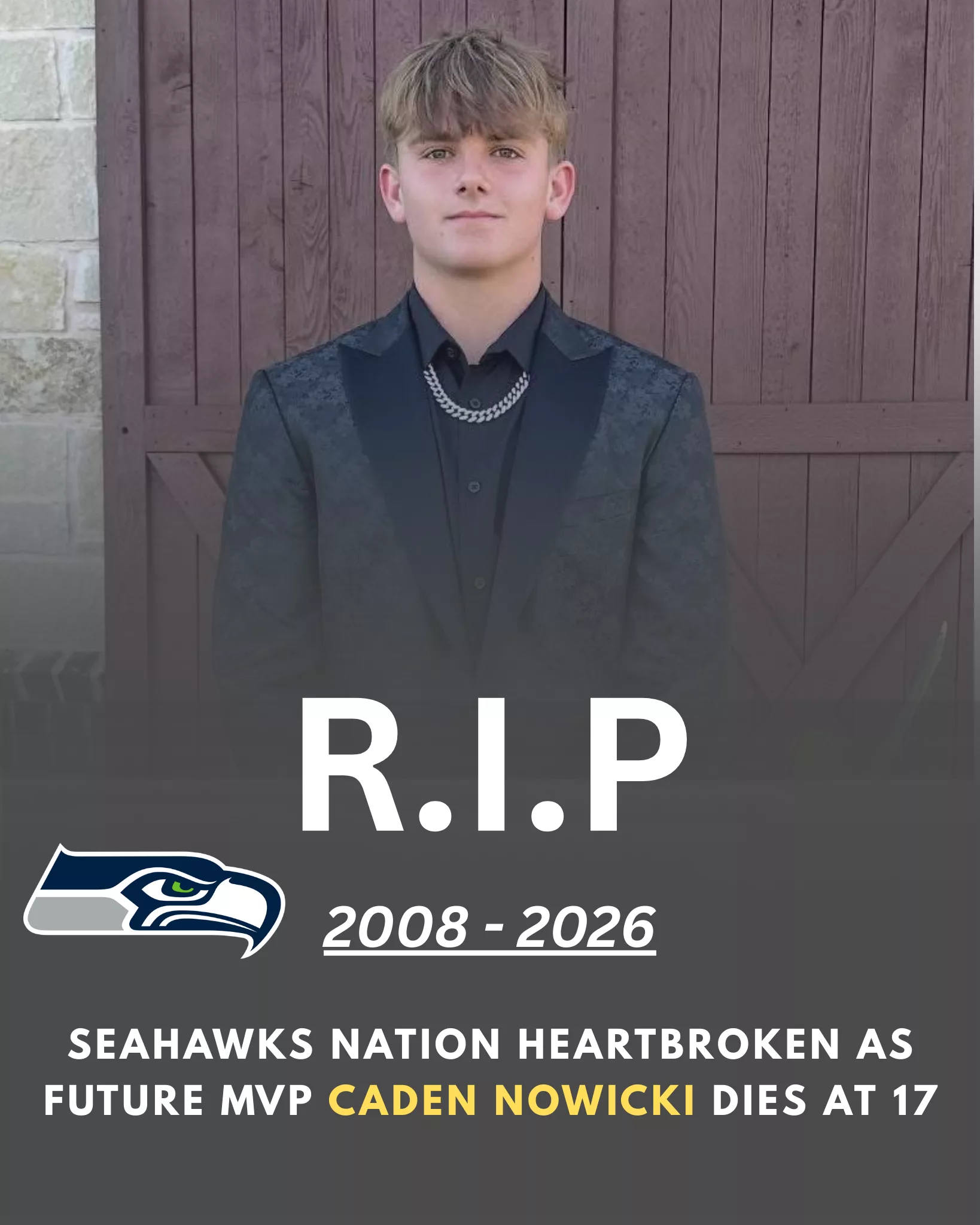 The Seattle Seahawks community is in mourning after the heartbreaking news of the passing of Caden Nowicki, a 17-year-old football prodigy widely believed to be a future MVP and one of the most promising young talents ever associated with the organization’s future vision. His untimely death has sent shockwaves through Seahawks fans, players, coaches, and the broader football world, leaving behind a deep sense of loss and disbelief.