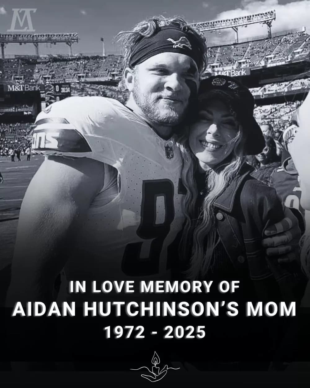 US.Sad news shook the NFL just 30 minutes ago: The mother of Lions defensive star Aidan Hutchinson passed away at the age of 55, leaving the team and fans shocked and heartbroken by this painful loss, spreading deep grief throughout the sports community