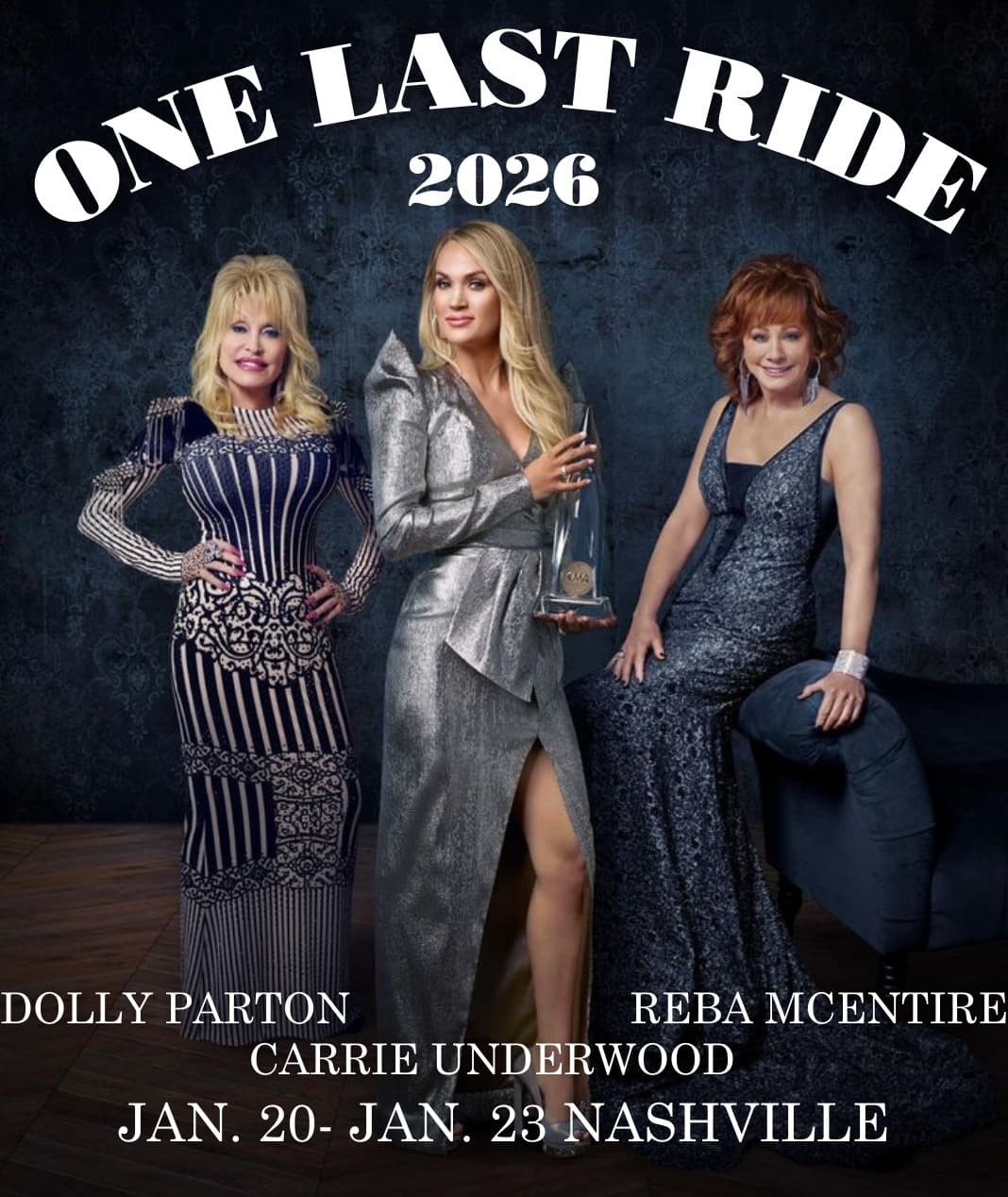 SHOCKING NEWS: Dolly Parton, Reba McEntire, and Carrie Underwood have officially announced the One Last Ride tour, set to take place in Nashville at the start of 2026. All details have been shared on their social media pages. This is real — so check the ticket prices and secure your fastest way to the show if you don’t want to be left outside screaming from the crowd!