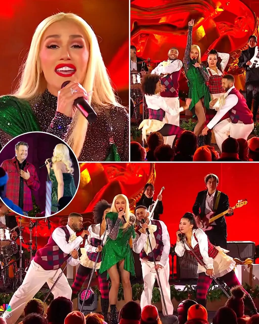 At 56, Gwen moved with the same fire she brought to stages in the No Doubt days, bouncing effortlessly across the platform in perfect command of every camera, every spotlight, every note. Her smile was bright enough to rival the Christmas tree towering behind her.