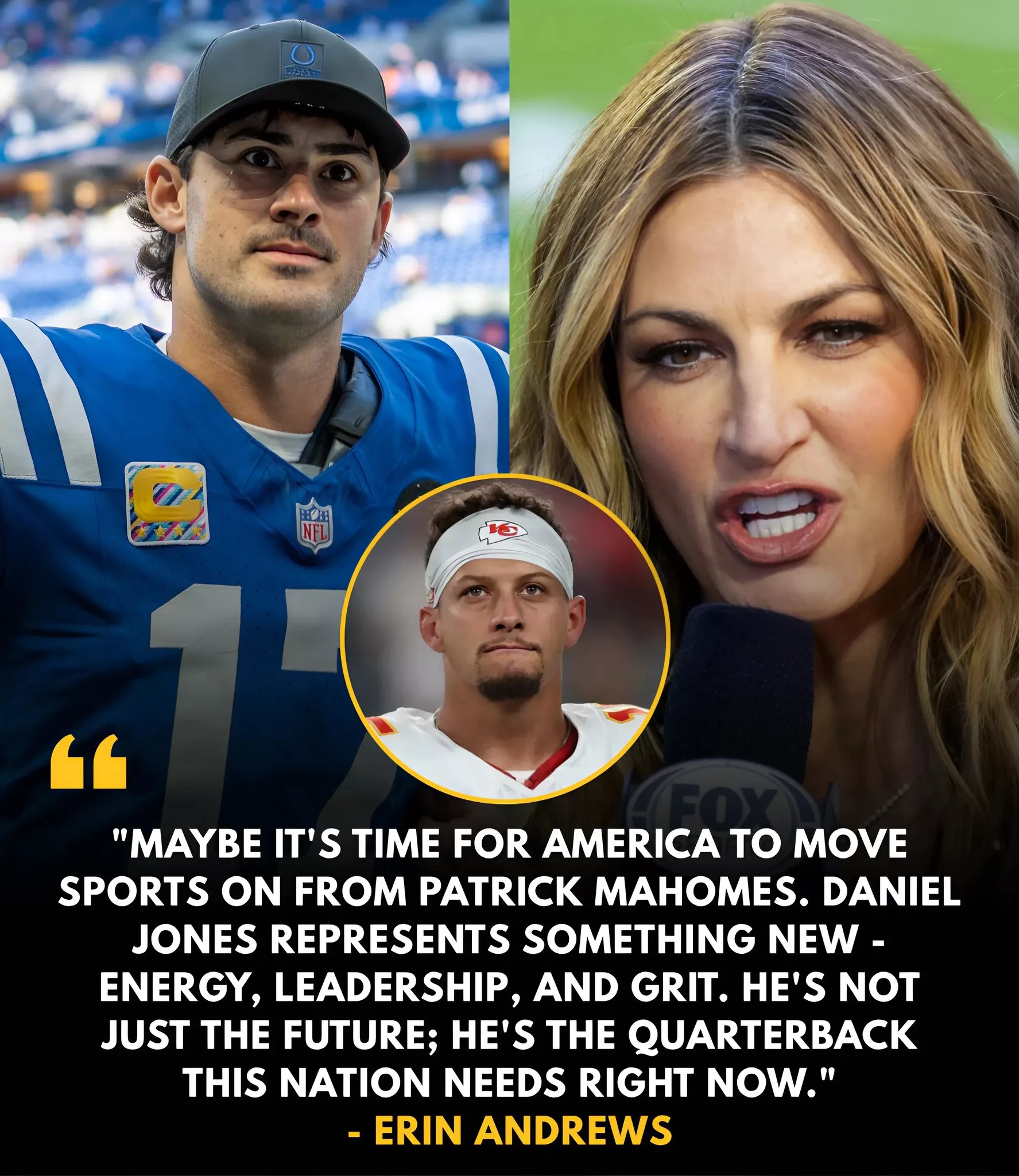 Patrick Mahomes — a generational talent, three-time Super Bowl champion, global icon — is not a name anyone casually suggests “moving on” from. Those eight words from Erin Andrews instantly fractured the football universe.