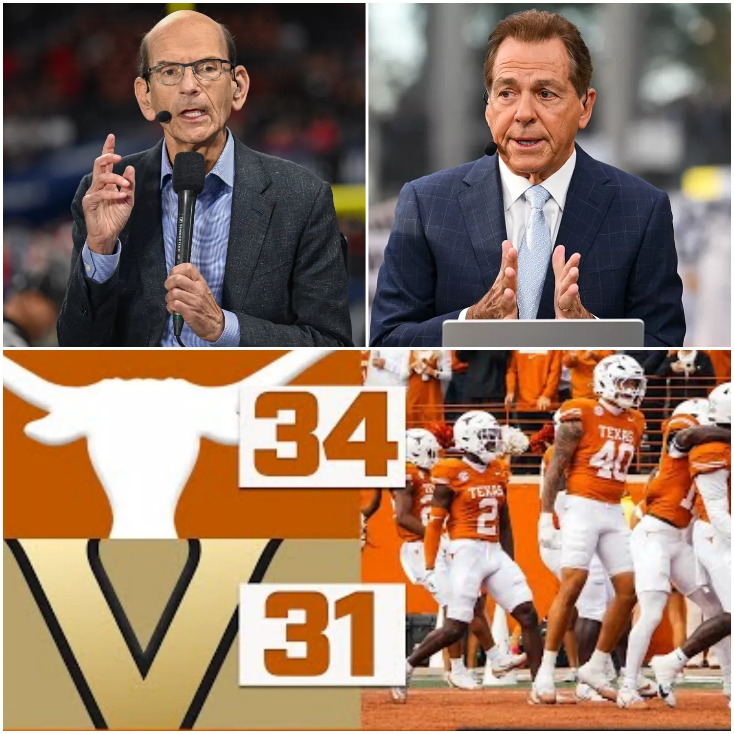 Saban didn’t stop there. The legendary coach, usually calm and reserved on set, began to break down his defense of Texas with the precision of a strategist. “They lost a tough one, sure,” he said, his tone now steady but commanding. “But that game showed heart. You think a team like Texas folds after one loss? You think Sarkisian doesn’t know how to rally his players? The ones who count them out are the same ones who’ll act surprised when they rise again.”