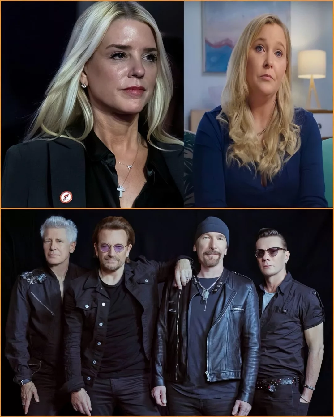 In a stunning turn of events that has captivated the entertainment world, U2 — the globe’s most influential rock band — has stepped into a growing cultural battle, joining country icon George Strait and rock legend Mick Jagger in publicly criticizing attorney Pam Bondi for her history of defending the powerful. The moment marked a rare alignment of voices from vastly different musical eras, creating what social media is now calling a “cultural triangle of accountability.”