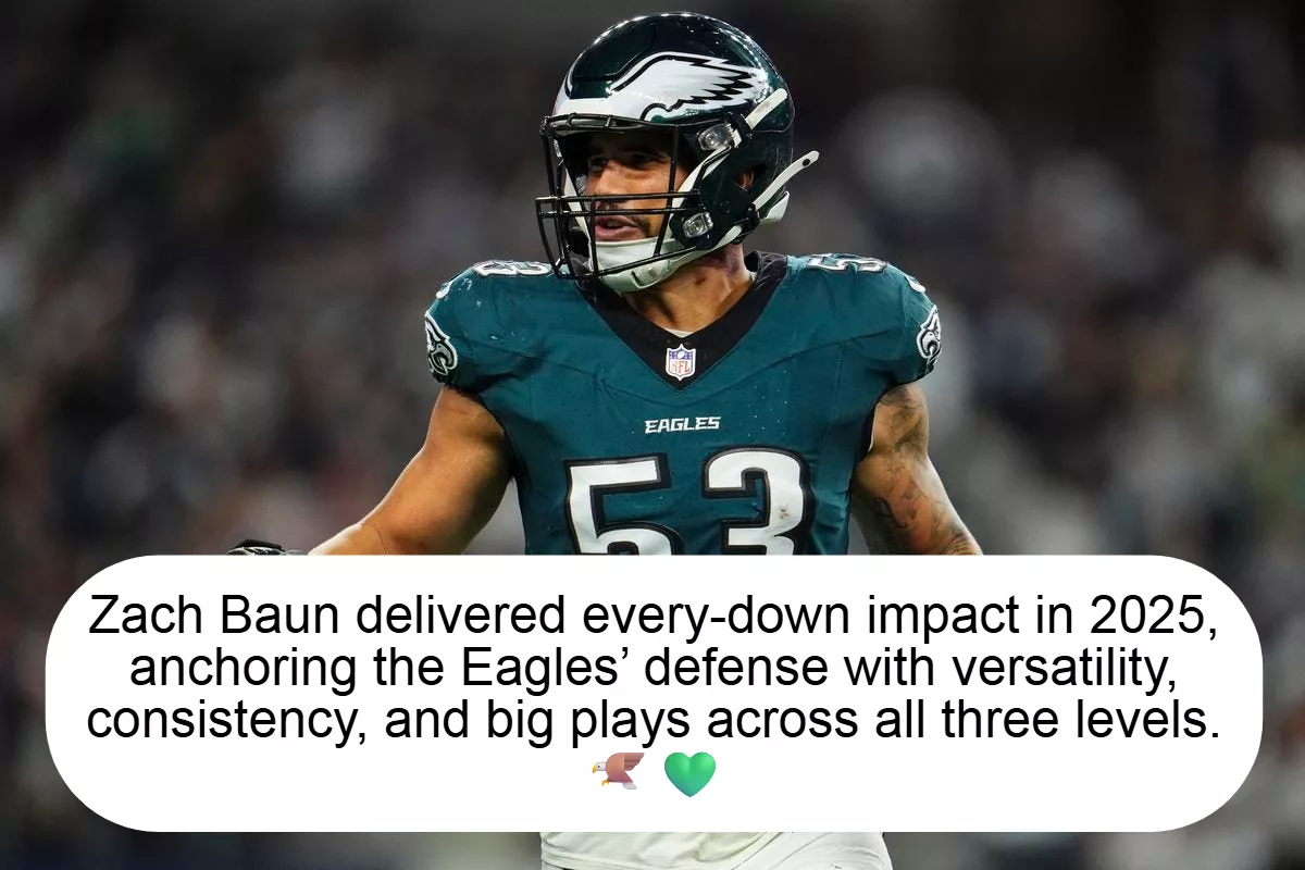 By the end of the 2025 campaign, it was clear that Zach Baun wasn’t just a contributor — he was a cornerstone. His stat line told part of the story, but the film told the rest. Snap after snap, Baun showed why he earned an every-down role and why Philadelphia’s defense leaned on him throughout the year.